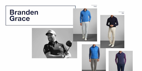 - Branden Grace – Grace will wear our brand new Hyperlight Shield Outerwear Thursday. Engineered from a highly technical 2.5 layer performance fabric, the Hyperlight Shield Half-Zip is a go-to piece offering fully waterproof, seam-sealed protection and optimal coverage in inclement weather. The Tour-tested fabric is supremely soft and comfortable with two-way stretch and easy-care benefits. A separate pouch allows it to be packed down tight and easily stashed in a golf bag or carry-on.