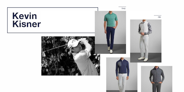 - Kevin Kisner – Kisner will wear a reversible camo sweater on Friday in the early morning cool weather on the west coast. Made from fine-gauge merino wool, this reversible sweater provides exceptional warmth and softness with every wear. The inherent properties of merino wool offer a naturally moisture-wicking and breathable fabric that’s ideal layered over sport shirts or under outerwear. It’s designed with a unique camo print for added flair on or off the course. Finished with a crewneck and rib-knit cuffs and hem.