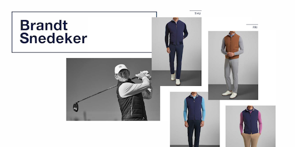 - Brandt Snedeker – Snedeker will be wearing Peter Millar Crown Crafted styles for the four days of competition. The Crown Crafted styles feature cutting-edge fabrics, sleek aesthetics and a Tailored Fit. Some of our favorites from Fall Crown Crafted styles include the Stealth light Cardigan he will wear on Thursday or in the cool mornings, and the Stealth Light vest that he will wear that offers warmth and wind block without weight.