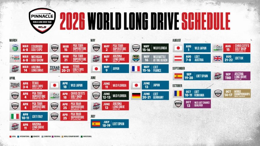 NEW YORK – The Pinnacle World Long Drive Tour today announced its official 2026 schedule, beginning in March and featuring more than 30 total competitions worldwide, including tour events, exhibitions, and qualifiers. Fueled by the landmark partnership with Pinnacle announced earlier this year, the schedule reflects the continued growth of the tour’s competitive footprint, highlighted by three premier domestic tour events and multiple broadcast showcases throughout the year.