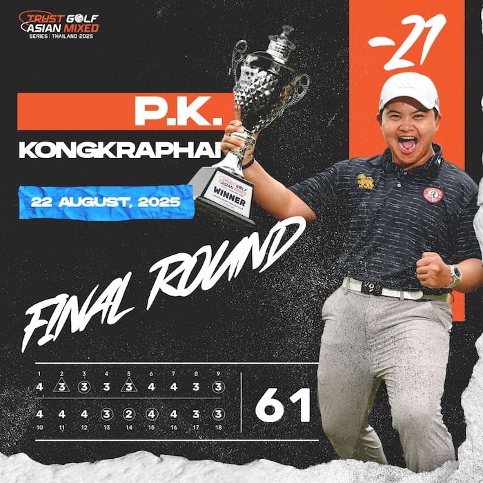 Kongraphan showcased remarkable consistency throughout the TrustGolf Asian Mixed tournament, shooting impressive scores in each round: 61, 64, 67, and 61.