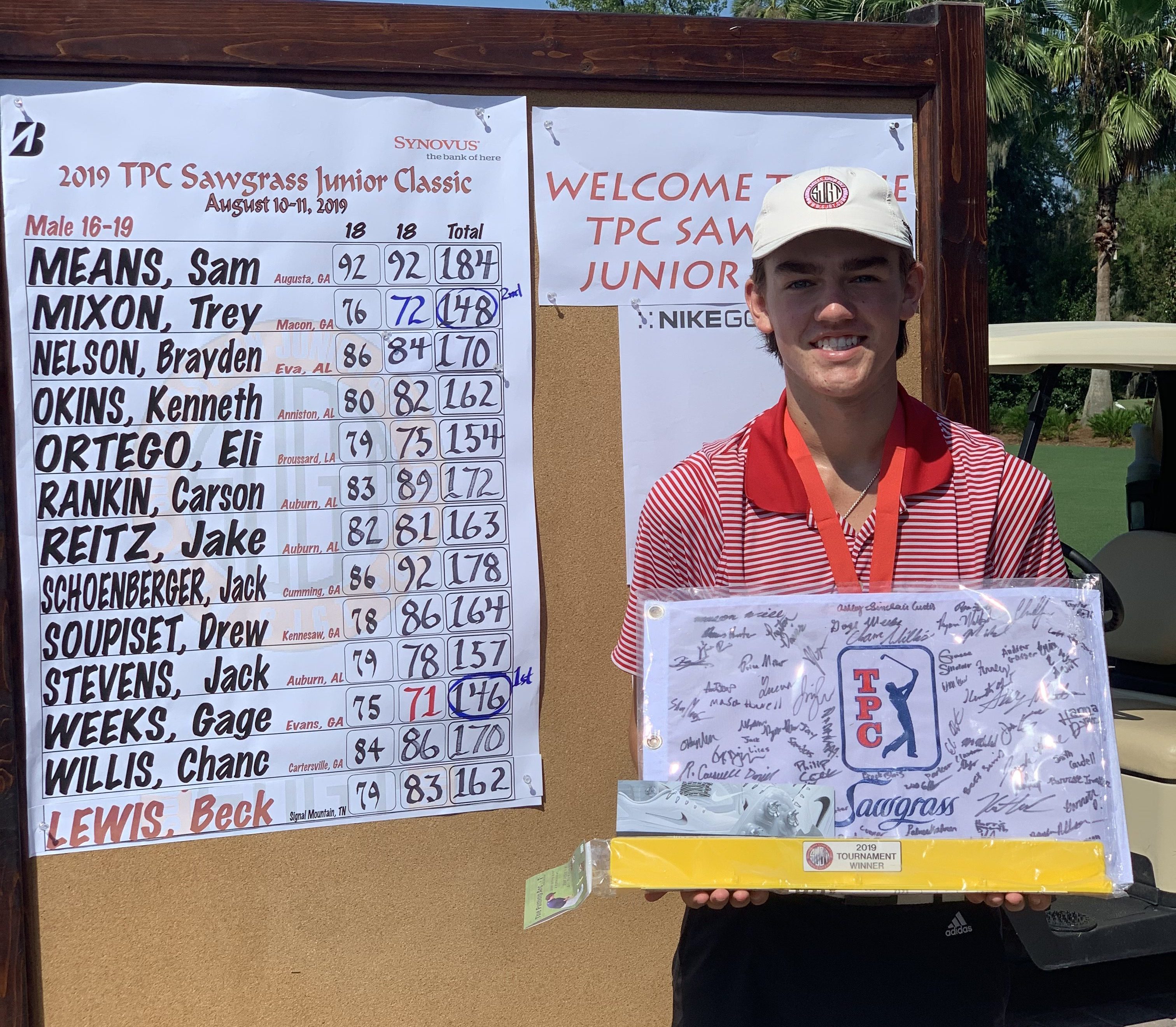 Finally, congratulations to Gage Weeks from Evans, GA and Abby Newton from Statesboro, GA for their win at the Southeastern Junior Golf Tour’s TPC Sawgrass Junior Classic last weekend. Gage shot rounds of 75-71 and Abby shot 78-78 to claim their wins.