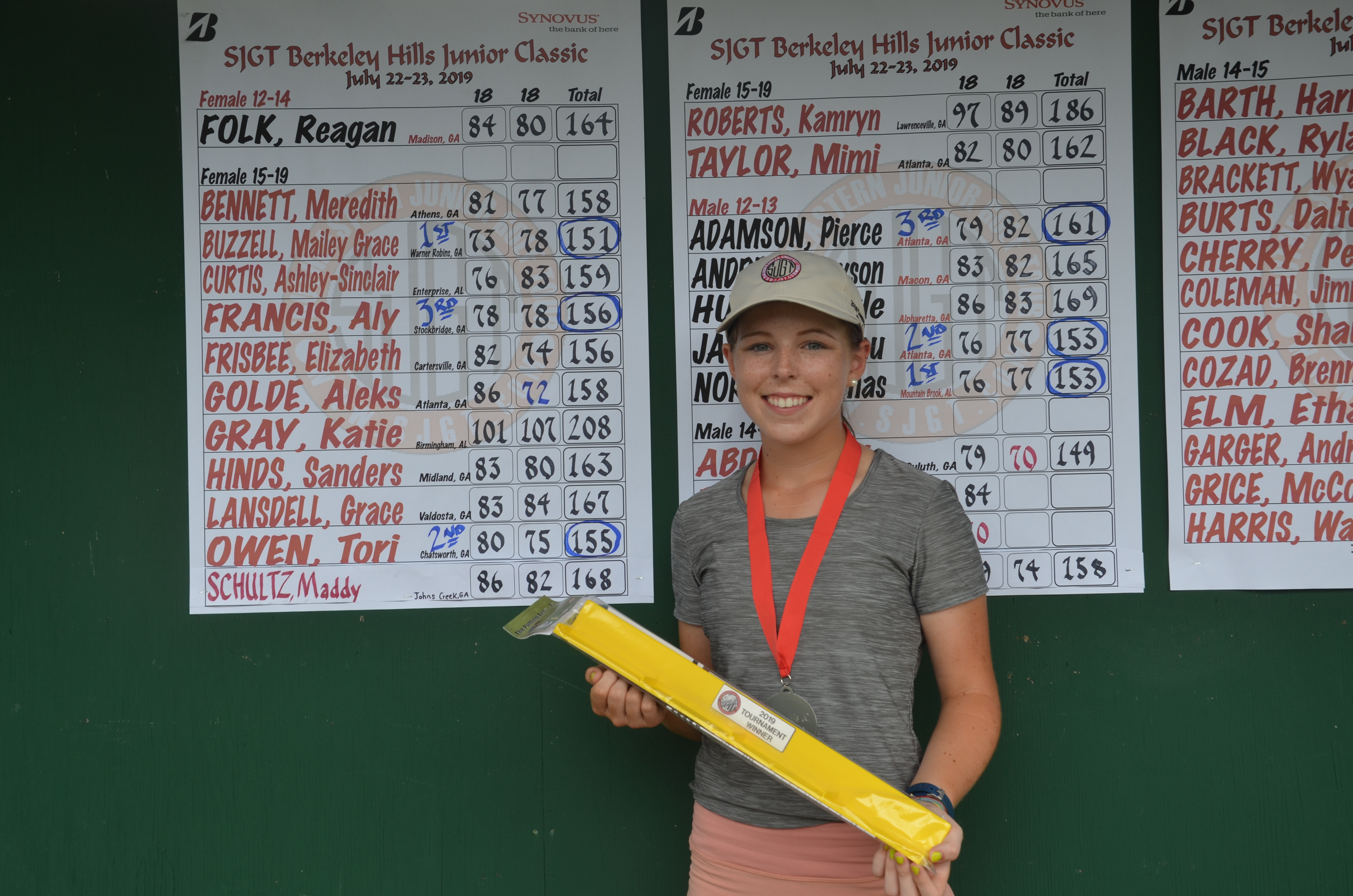 The Female 15-19 Winner was Mailey Grace Buzzell of Warner Robins, GA with rounds of 73-78 and the Male 16-19 winner was Andrew Garger of Sharpsburg, Ga with rounds of 72-69.
