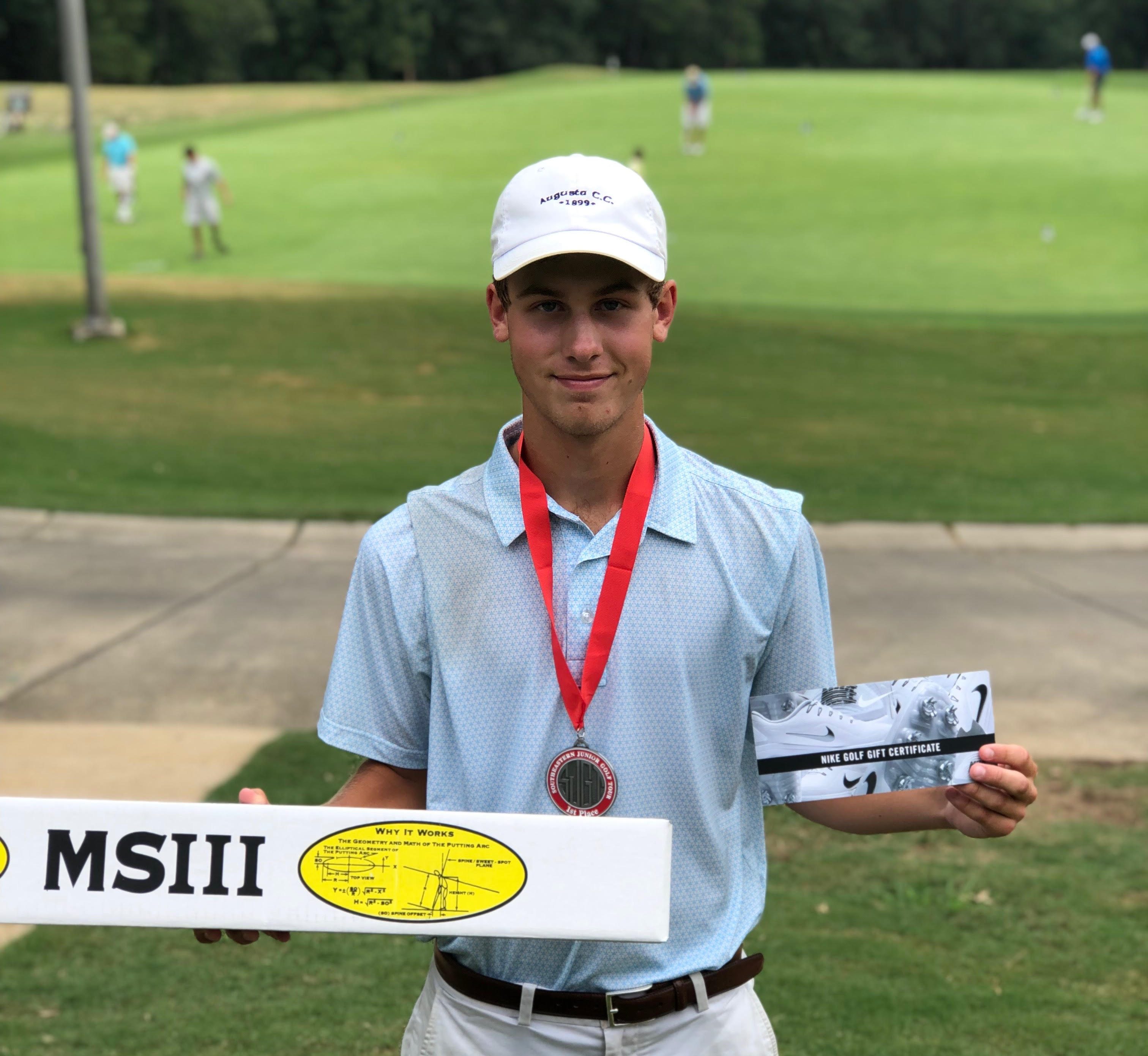 Finally, congratulations to the winners of the Southeastern Junior Golf Tour’s SJGT Championship, held Monday and Tuesday at the Pine Tree Golf Club in Birmingham, AL. The overall male winner was Bo Blanchard of Columbus, GA with rounds of 69-66 and the overall female winner was Morgan Ellison of Peachtree City, GA with rounds of 75-73.