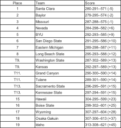 Santa Clara moved ahead to the top of the team standings with solid performances from Audrey Brust and Kelsey Kim, combined for 6-under on the day. Brust’s 67 tied her own school record for the lowest round in program history and was the day’s low round at Hōkūala. She carded seven birdies, including back-to-back streaks on Nos. 4–6 and 13–15. Kim’s steady 1-under 71, highlighted by two birdies and a bogey-free back nine, helped the Broncos move three shots ahead of Baylor (-2). Missouri sits in third at 1-under par.