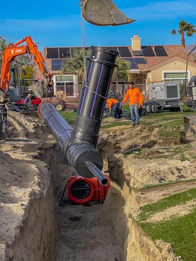 CHULA VISTA, CA – AquaFuse® by CMF Global, Inc., a world leader in revolutionizing (HDPE) piping products which improve golf course performance and water efficiency, proudly announces that their HDPE irrigation systems are being installed at the San Gorgonio Golf Course, the Mountain Vista Golf Club’s second golf course in the Sun City Palm Desert Community.