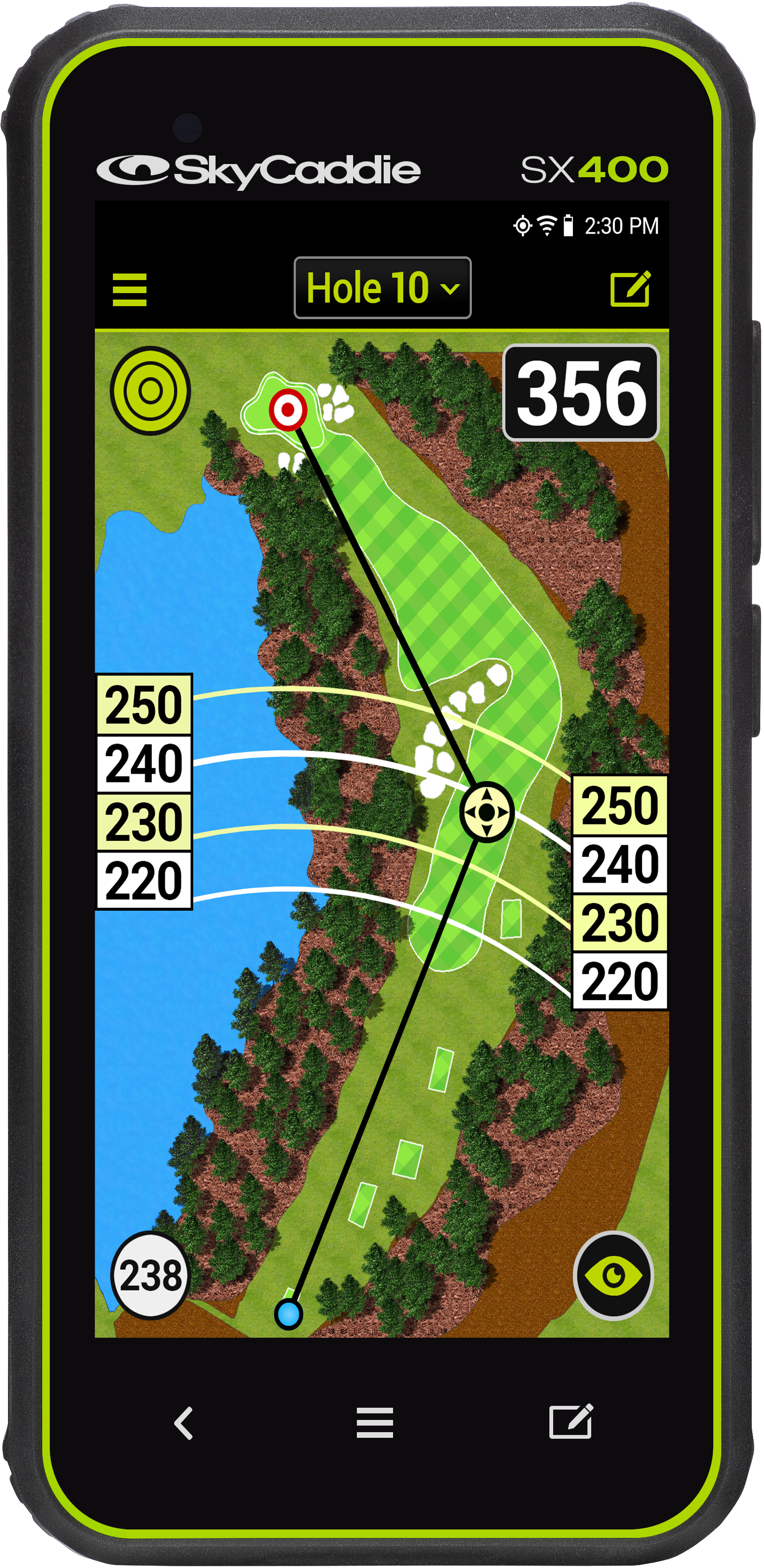 The powerful processors in the SX500 and the SX400 drive SkyCaddie’s new “Dynamic HoleVue™”, which automatically re-orients the entire golf hole from your position to the green as you progress from the tee. So, in addition to SkyCaddie’s patented IntelliGreen technology, golfers can now see the entire hole from their point-of-view.