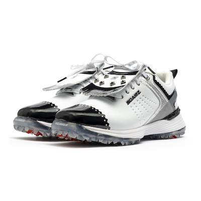 This truly eclectic styling is inspired by global fashion trends which were creatively integrated into SQAIRZ’s game improvement golf footwear design. The outspoken design features distinct, trendy colorways with complimentary modish accents.SQAIRZ’s lead shoe designer wanted to further enhance the discerning style with an interchangeable kiltie brought to life by jewelry, or “bling”, mounted on the top for added fashion. The Couture models have a gusseted tongue and are waterproof all the way to the top eyelet. They also feature new Sta-Put Lace™ technology and come with a 30-day money-back guarantee. The new FREEDOM™Couture is available in White & Silver, White & Opal, and White & Gold.