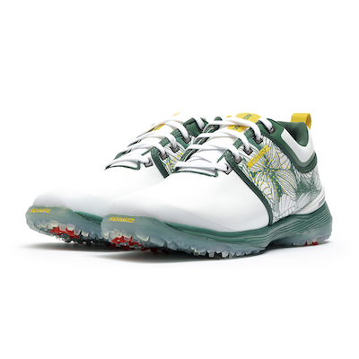Sir Nick Faldo’s incredible Masters Tournament victories are significant as they will never happen again, considering the playoff rules have since changed. Sir Nick bested Scott Hoch in 1989 and Ray Floyd in 1990 in dramatic sudden-death playoffs on the 11th hole. These incredible moments were the inspiration for the new Augusta 11 shoe. The focus of the design accentuates the Dogwood flowers and signifies the importance of the 11th hole with a red ‘11’ on the pull tab. Only 700 pairs of this historic limited edition commemorative shoe are being manufactured.