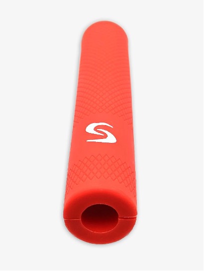 The SuperSpeed Squeeze is a simple device that fits over the golf grip of the player’s own golf club. It is recommended for use on a mid-iron for best results. This training is very similar to “fat grip” training that is typically done in the gym for the same purpose of increasing grip strength. The player goes through the included training protocol which involves 5 second isometric holds with each hand, quick burst squeezes, and full golf swings.