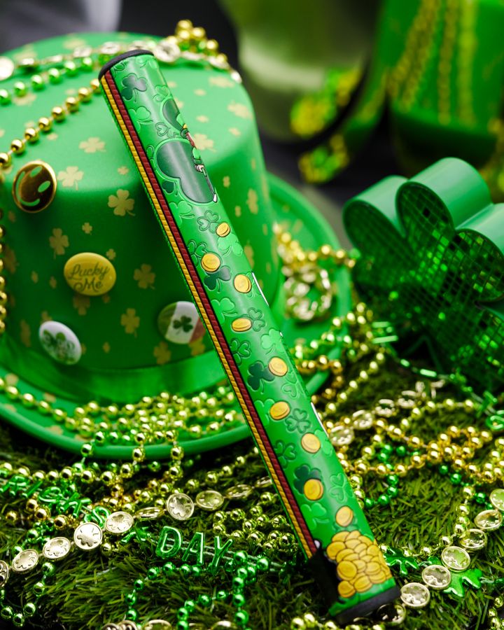 The bold green grip features a whimsical leprechaun character surrounded by bountiful downpour of lucky clovers and gold coins. The back of the grip incorporates SuperStroke’s patented SPYNE™ feature in a textured rainbow design that leads to an overflowing pot of gold. During every round, we face those putts that require a little dose of luck, so this grip puts some welcome Irish fortune in the palm of your hands.