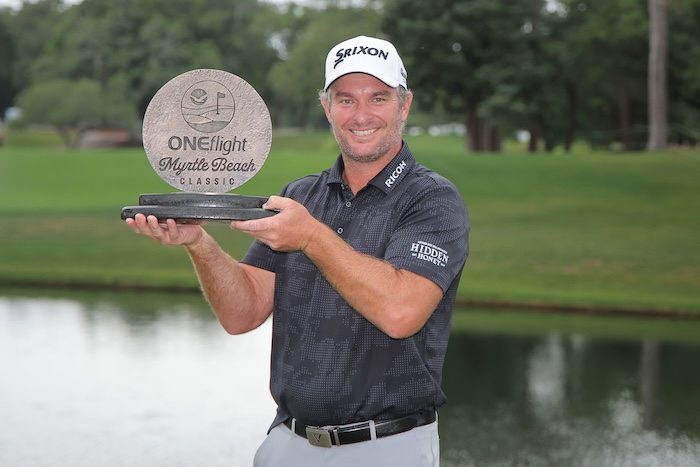 MYRTLE BEACH, SOUTH CAROLINA – MAY 11: Ryan Fox of New Zealand poses with the trophy after winning the final round of the ONEflight Myrtle Beach Classic 2025 at Dunes Golf & Beach Club on May 11, 2025 in Myrtle Beach, South Carolina. (Photo by Jonathan Bachman/Getty Images)