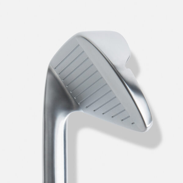 The smooth connection from hosel to the top-line of the clubface rests easily behind the ball, appearing blade-like at address. Slightly changing to a higher center of gravity in the short irons creates a lower trajectory and more control on shorter shots as one works through the set.