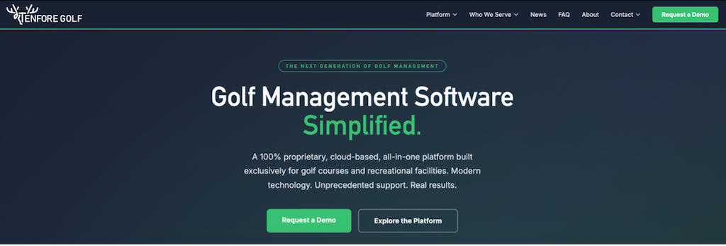 The site also highlights TenFore’s integrated software ecosystem, which enables operators to connect with best-in-class partners across the golf technology landscape while maintaining a unified operational platform.