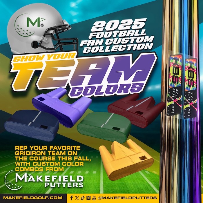 Bring the spirit of game day to the green with the brand new Makefield Putters Football Collection. Designed for fans who live and breathe football, this series lets you customize your putter with bold colored heads, grips, and shafts that match the colors of your favorite team, whether it’s pro, college, or even your hometown high school.