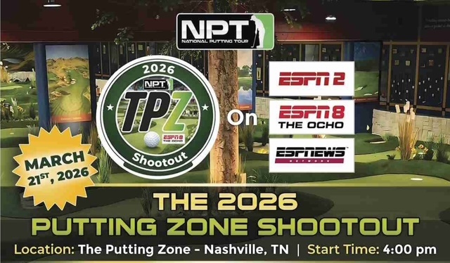 As home of the World’s finest putting venue, you have to expect greatness, and greatness is soon to descend upon the course this coming March 21st. The National Putting Tour has booked its preeminent event – The TPZ Shoot-Out at the facility. This is going to be the biggest and best tournament that the National Putting Tour has ever held. The purse for the event is an eye-popping $25K, with $10K going to the winner. This is unheard of money for this Tour. In addition, the tournament will be filmed, and during the first week of August, ESPN2, ESPN News, and ESPN 8 – The Ocho will air the tournament on their network of channels.