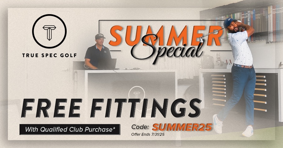 For the entire month of July, True Spec customers who use promo code “SUMMER25” will receive a free fitting with a $500+ club purchase, or a free full bag fitting with a $1,000 club purchase at all True Spec locations nationwide. Fittings just need to be booked on or before July 31st, 2025, and the equipment purchase must be made the same day as the fitting for the promo to apply.