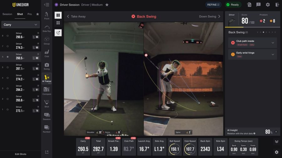 Following extensive development and customer feedback, Uneekor’s AI Trainer now features a powerful AI-driven coaching system that stands apart from the competition. Unlike other AI-driven golf solutions on the market that focus solely on swing errors, the system integrates precise launch monitor data to analyze the direct correlation between swing checkpoints and ball/club performance. Every shot is analyzed in real time, providing a highly personalized performance analysis that evolves with the user’s game.