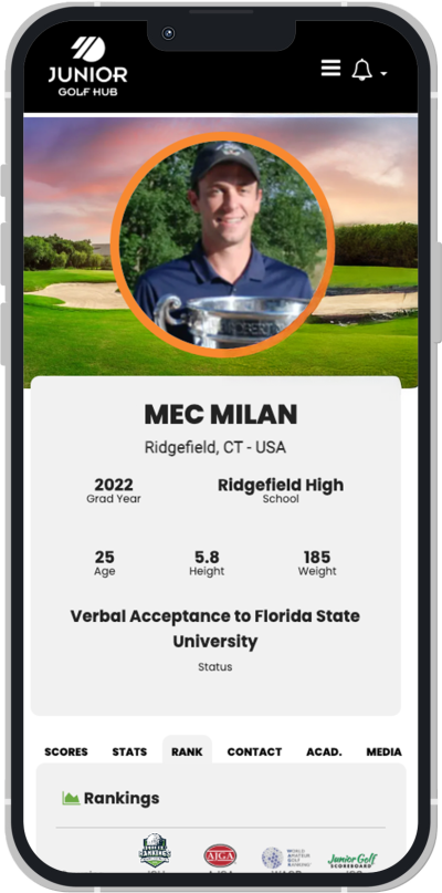 (RIDGEFIELD, Conn.– Junior Golf Hub (JGH), the leading digital platform for junior golfers, their parents, and college coaches, today announced a significant overhaul of its athlete profile system. This comprehensive update integrates player ranking information directly into an enhanced profile design, creating a powerful, all-in-one resource for showcasing a junior golfer’s journey and potential. The new Athlete Profile is meticulously designed to serve the diverse needs of its users, from public discovery to in-depth coach evaluation. Key enhancements include: