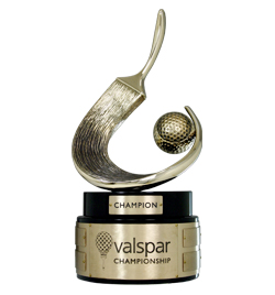 The Valspar Championship will be played March 21-24 at the Copperhead Course at Innisbrook Resort and Golf Club in Palm Harbor, Florida. On Sunday one talented and lucky PGA Pro will be holding this exclusive Champions Trophy designed by Malcolm DeMille. This modern cast bronze sculpture captures the essence of Valspar’s relationship with golf by combining great elements of both their brand and the sport. The Pro-Am winners will take home sleek award trays that incorporate a 2-Dimesional replica of this stunning sculptural Trophy. Look for these unique hand crafted Prizes this week on the PGA Tour!