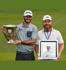 Congratulations to Max Homa who took home the Wells Fargo Championship trophy cup over the weekend! The Malcolm DeMille hand crafted, rhodium-plated bronze cup was redesigned this year to incorporate the new Wells Fargo Championship logo. The trophy cup keeps the thoughtfully detailed elements, including handles that portray the rich history of the tournament, however it now features the new logo in the hand carved crystal. The Pro-Am awards also received a redesign. These stunning high end stainless steel Trophy Trays feature a replica 2D casting of the new Wells Fargo Championship cup, and are engraved for the event. All of us at Malcolm DeMille are proud to continue our lasting relationship with the Wells Fargo Championship.