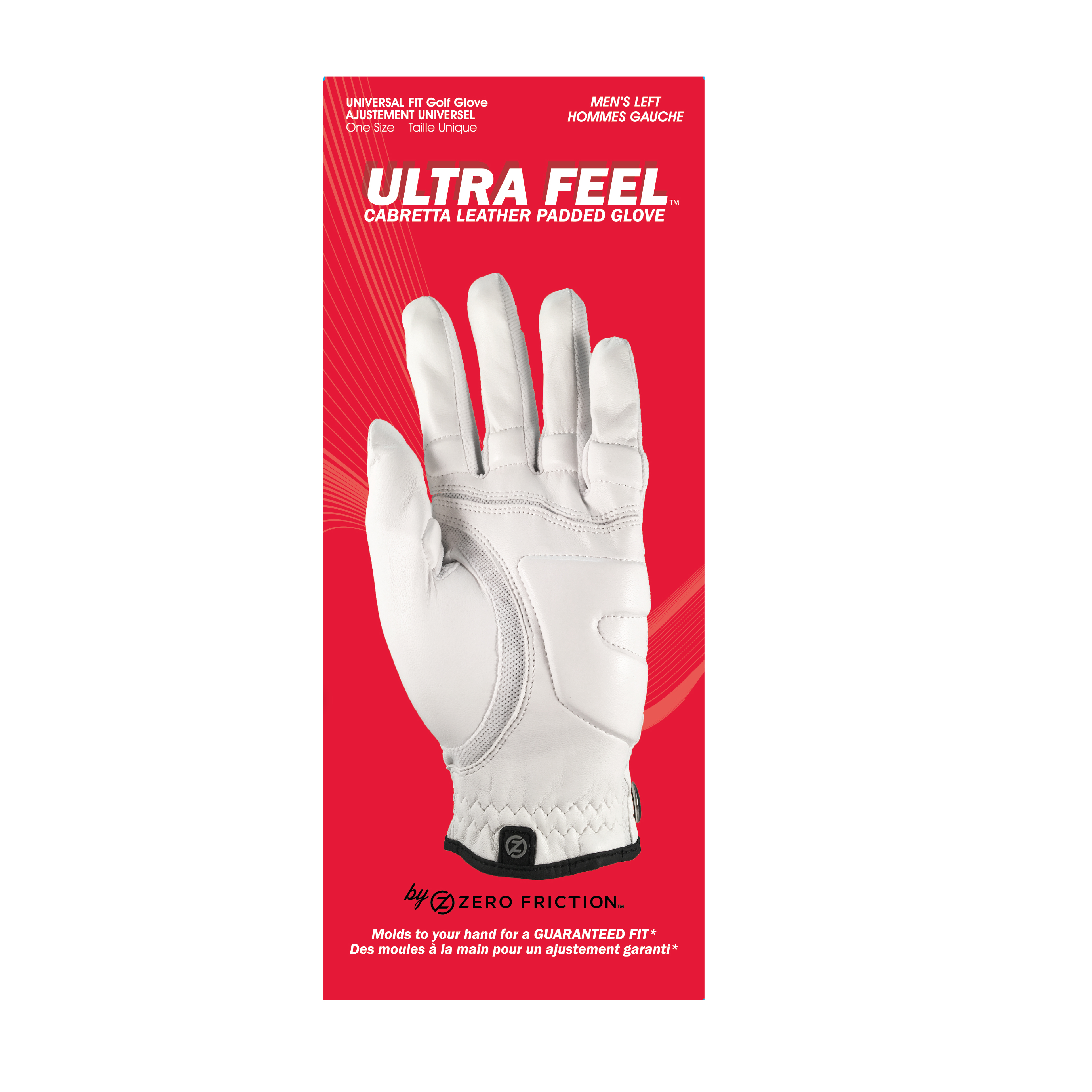 - The Ultra Feel Golf Glove is a Cabretta Leather Padded glove; available in men’s white and black.