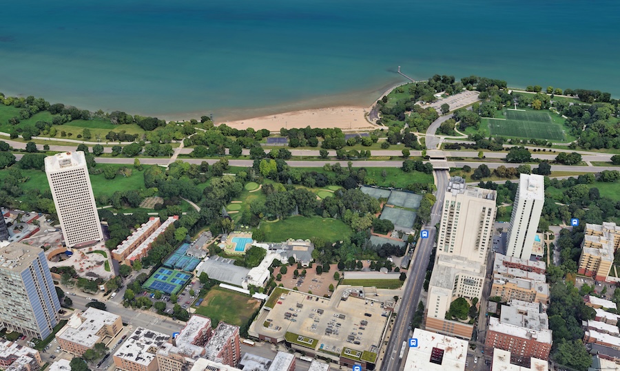 The course’s reversible routing maximizes the golfing potential of a very compact and urban site located just north of Lincoln Park, along Lake Shore Drive and slightly inland from Lake Michigan’s Foster Avenue Beach. Eight engaging par-three holes can be played in two opposing directions, with a four-hole routing in play at any given time. The design ingeniously preserves space in the unused direction for members to simultaneously practice their short games and putting.