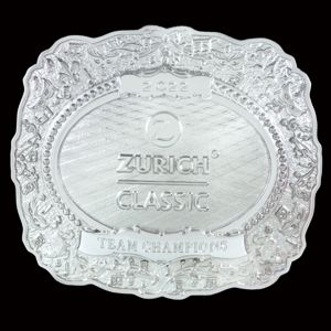 Congratulations to Patrick Cantlay and Xander Schauffele on their win at the Zurich Classic. The winning pair held off Sam Burns and Billy Horschel to complete a wire-to-wire victory. In doing so, they were awarded the highly coveted Zurich Classic Champions belts handcrafted by Malcolm DeMille. The wearable trophies are impressive 6” rhodium plated buckles. The buckles embody the spirit of New Orleans featuring music notes, fleurs-de-lis, gators, and Mardi Gras masks. These original prizes have come to be an iconic part of the Zurich Classic as they embrace the city and team spirit that has set this event apart.